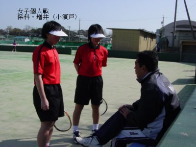保科・増井(小須戸)は、その中でも、ストローク力があり、外に向いているペアだったが、相手の風に対する対応が、それを優った。相手は風上に行っても、ほとんどミスすることなく、風に乗って、ボールがベースラインぎりぎりに入るショットが何本もあり、苦しんだ。それでもいい試合を行い、2−4で敗退したものの、よい場面を何度も見せてくれた。
